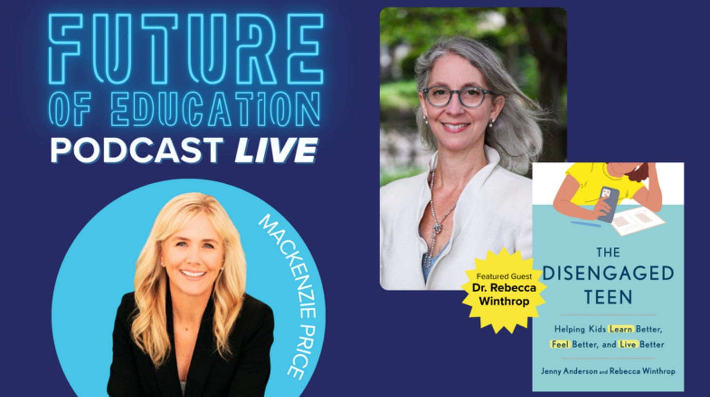I’m hosting a live podcast episode with a special guest: Dr. Rebecca Winthrop, co-author of The Disengaged Teen. We’ll answer questions like, “Why do so many kids become disengaged at school?” and, “What are evidence-based strategies to help them rediscover their love of school?” Bring your questions for the live Q&A — and get a chance to receive a free signed copy of Dr. Winthrop’s book.