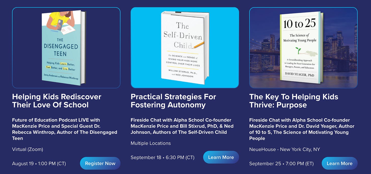 I’m hosting some live events this fall. They’re totally free to tune in and listen. You can register for my upcoming talk with Dr. Rebecca Winthrop on August 19th at 1 pm CT. I’d love to see you there!